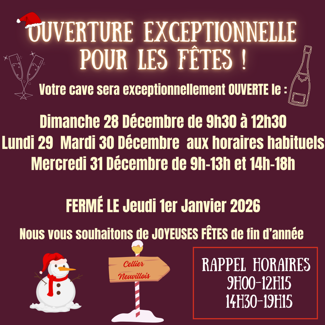 Horaires d’ouverture pour les FÊTES